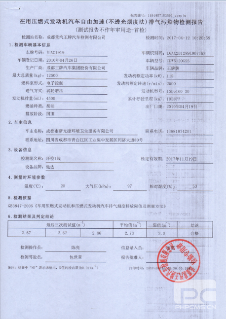 成都市環(huán)衛(wèi)車輛尾氣改造實(shí)例