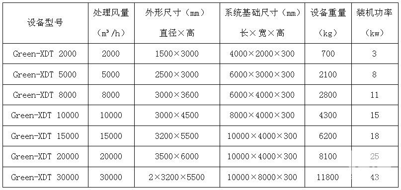 Green-XD(塔式)生物洗滌除臭設(shè)備主要技術(shù)參數(shù)