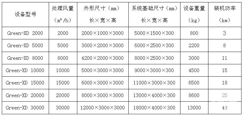 Green-XD(箱式)生物洗滌除臭設(shè)備主要技術(shù)參數(shù)